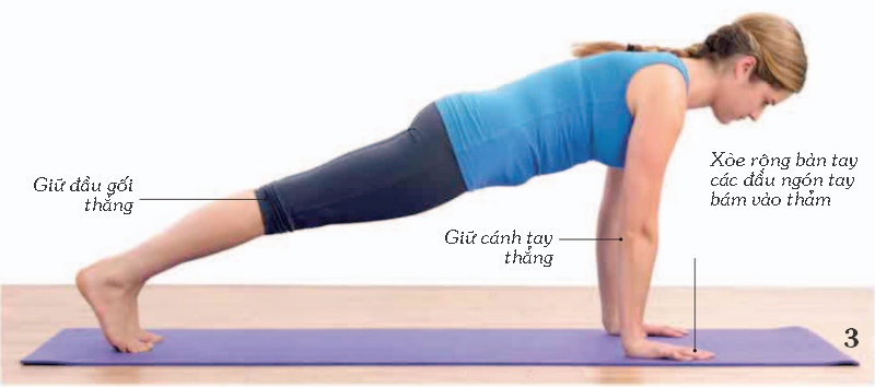 - Nhấn 2 tay xuống sàn, mở rộng bàn tay. Mở rộng vai